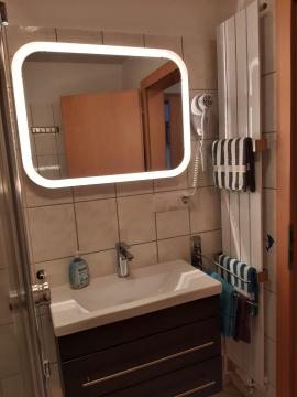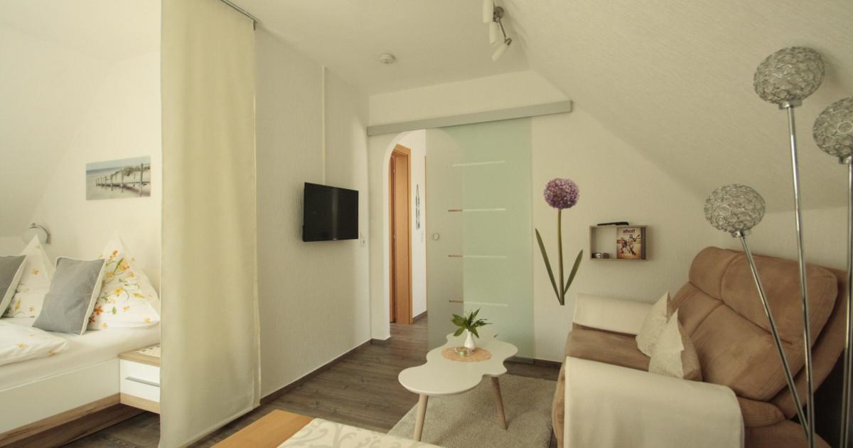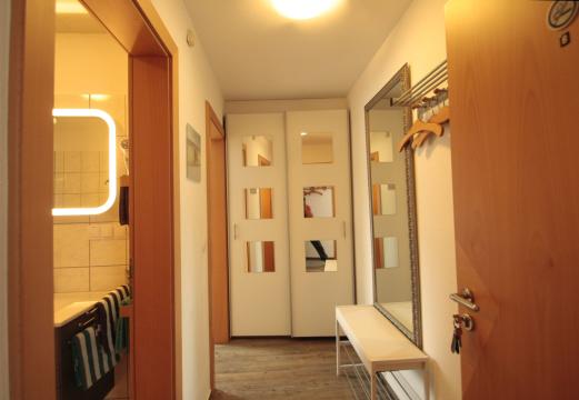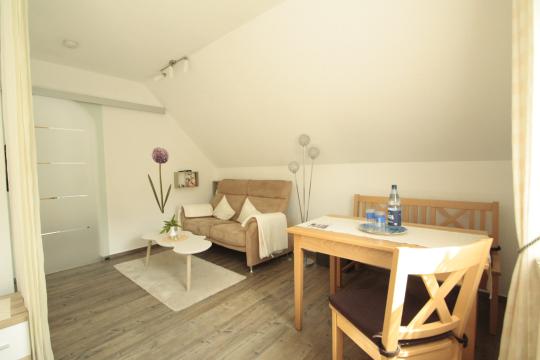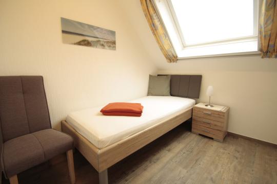 Unsere Gäste haben die Wahl durch das Einzelzimmer zusammen oder getrennt zu schlafen. Die Wohnung B wie auch die anderen Wohnungen in unserem Haus werden ausschließlich an Singles und Paare vermietet. Die Küche ist durch eine Schiebetür vom Wohn- Schlafraum getrennt. Das innen liegende Duschbad ist gut belüftet. Die Küchenzeile mit Cerankochfeld und Backofen ist ebenso selbstverständlich wie Gläser, Geschirr und Besteck in ausreichender Menge. Eierkocher, Toaster und Wasserkocher gehören ebenso dazu wie das Telefon, mit dem sie im deutschen Festnetz (außer Service-Nummern) gebührenfrei telefonieren können. Über unser hauseigenes W-LAN können Sie Ihre E-Mail-Kontakte pflegen oder in der ganzen Welt surfen. Außerdem stelle ich Ihnen zwei Fahrräder zur Verfügung mit denen Sie die Insel erkunden können.