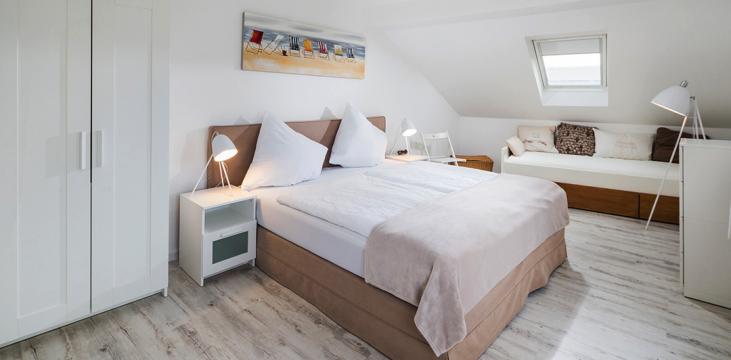 Diese großzügige 4 Sterne Ferienwohnung bietet sich besonders für Familien an und ist süd-westlich ausgerichtet (teilweise Seeaussicht). Alle Räume sind hell und freundlich.