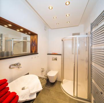 Our decadent and spacy apartment Anna has room for up to six persons. It features two bedrooms for two persons each with double beds and a big living room with a high-quality sofa-bed combination for up tpo two people. The apartment has one bathroom with shower and toilet and one retro visitor bathroom which are both reachable without crossing the bedrooms.