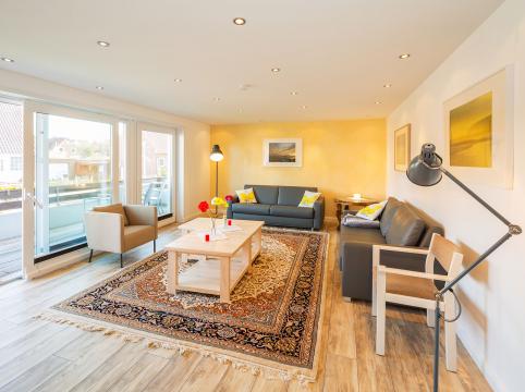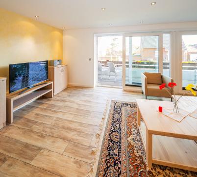 Das Wohnzimmer, sowie eines der Schlafzimmer, verfügen jeweils über einen eigenen Balkon. Beide Schlafräume sowie auch der Wohnraum bieten jeweils einen Flachbild –TV. Kostenfreies WLAN für unsere Hausgäste.